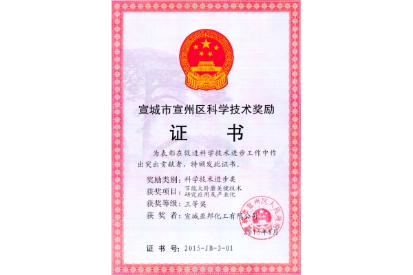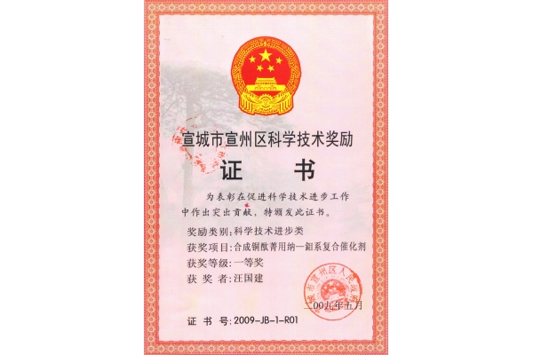 The First prize of science and technology progress of Xuanzhou District in 2009
