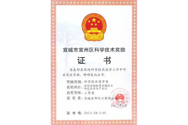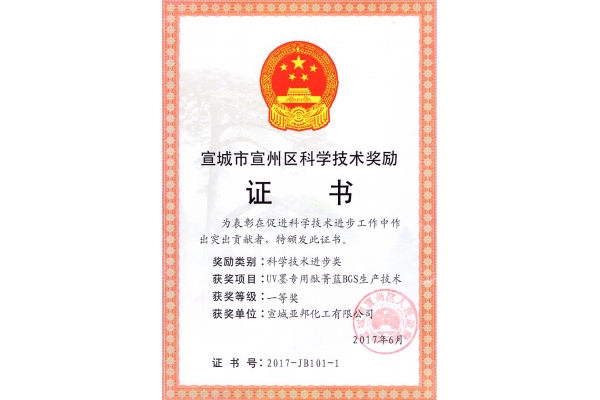 2017 District Science and Technology Award - company certificate