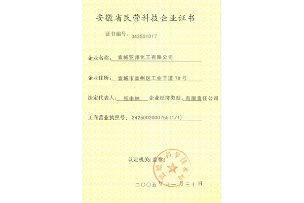 Anhui Private Science and technology enterprise certificate