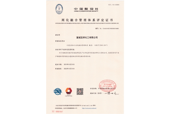 Management system evaluation certificate of Integration of Informatization and I