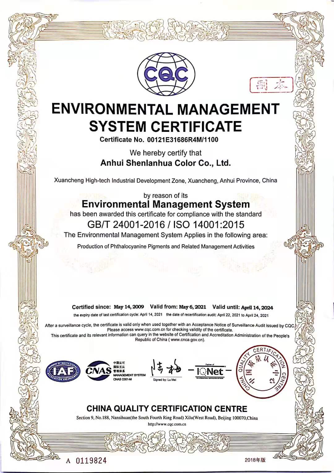 職業(yè)健康安全管理體系認證證書(中文副本)