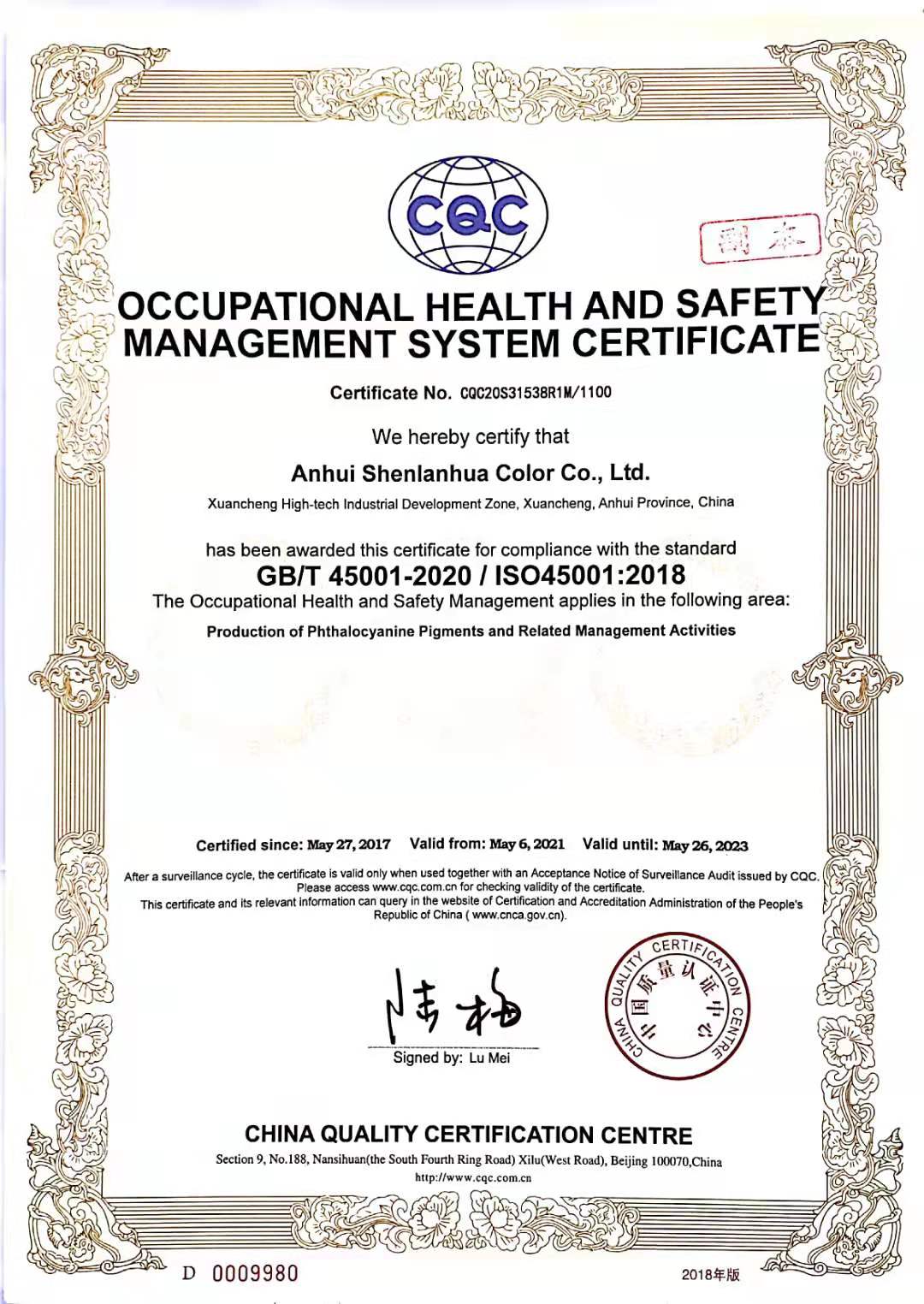 職業(yè)健康安全管理體系認證證書(英文副本)