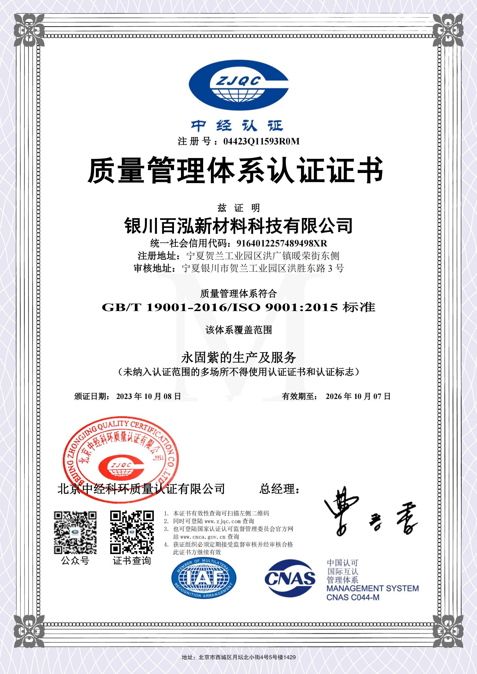 質(zhì)量管理體系認(rèn)證證書(shū)(百泓新材料)